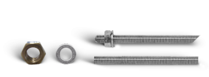 BF 4.8. Varilla roscada Bossong clase 4.8 EN ISO 898 corte 45° con tuerca y arandela.